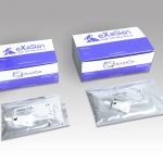 eXaSkin is presented in an easily manageable paste format. Applied at room temperature it adapts to any surface region of the body and solidifies in less than two minutes. It is especially recommended for treating highly critical regions (neck, ear, face, genitals, etc.), does not cause local toxicity (dermatitis) and does not require complex applicators for its use.